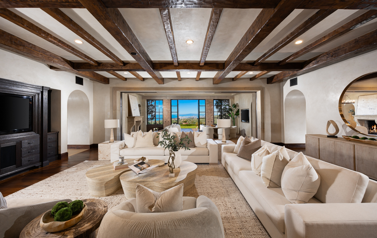 仅限邀约方可一窥真容,这座托斯卡纳风格庄园坐落于专属双重门禁社区 Crystal Cove 之中,是极为稀有的传世级府邸。占据整个社区少见的双地块之一,且整体地势高于街道水平,视野更为开阔,将浩瀚海景尽收眼底。 庄园由知名开发商 PrideMark 打造,占地逾 1.10 英亩,总建筑面积超过 12,000 平方英尺,堪称典藏级地标物业。约 280 度环绕海景覆盖整座居所,包括 10,464 平方英尺的主宅及 1,883 平方英尺的独立客用住宅。 室内外生活体验在此达到极致平衡:四处壁炉(室内三处、室外一处)与精致火坑相映成趣,无论私密聚会还是高端宴请皆从容优雅。步入私密大门,映入眼帘的是经过精心设计的空间美学——丰富材质、对称布局、定制收纳与细腻建筑细节相互交织。 大宅核心的 Great Room 通过钢框落地窗引入壮阔海景,视线延伸至 Palos Verdes 与 Long Beach。室内外连通的封闭式凉廊(loggia)打造四季皆宜的起居与用餐空间。 主层配置齐全,包括典雅图书馆、换衣间(mud room)、两间套房卧室、两间客用盥洗室及宽敞洗衣区。行政级书房私密宽敞,尽览海景、城市灯火、港口及庭院景观。另设独立健身/多功能空间,配备独立入口,灵活多用。 整座庄园共设六间卧室与十间浴室:主宅内五间套房卧室,另有独立客房配备一间卧室、两间浴室及一间可从户外进入的浴室,满足多元居住需求。 主厨级厨房配置高端设备,包括石砌拱形烟罩、Viking 专业炉具、36 英寸冰箱与独立冷冻柜、定制储藏空间,以及配有古董石材壁炉、可俯瞰花园的早餐区。 楼上主卧套房坐拥海景,配备拱形砖结构环绕的浸泡式浴缸、地暖系统、摩洛哥古董瓷砖、超大衣帽间及双淋浴(含蒸汽功能)。同层另设两间套房卧室与影音娱乐室。 户外空间同样令人惊艳:无边际泳池、推杆果岭、火坑、内建烧烤亭,以及无与伦比的海景视野共同构筑顶级生活方式。 车位方面配备六个车库车位及六个庭院停车位。独立客用住宅提供完整居住功能,设有电梯通达,装修标准与主宅一致,适合宾客接待、多代同堂或工作人员居住。