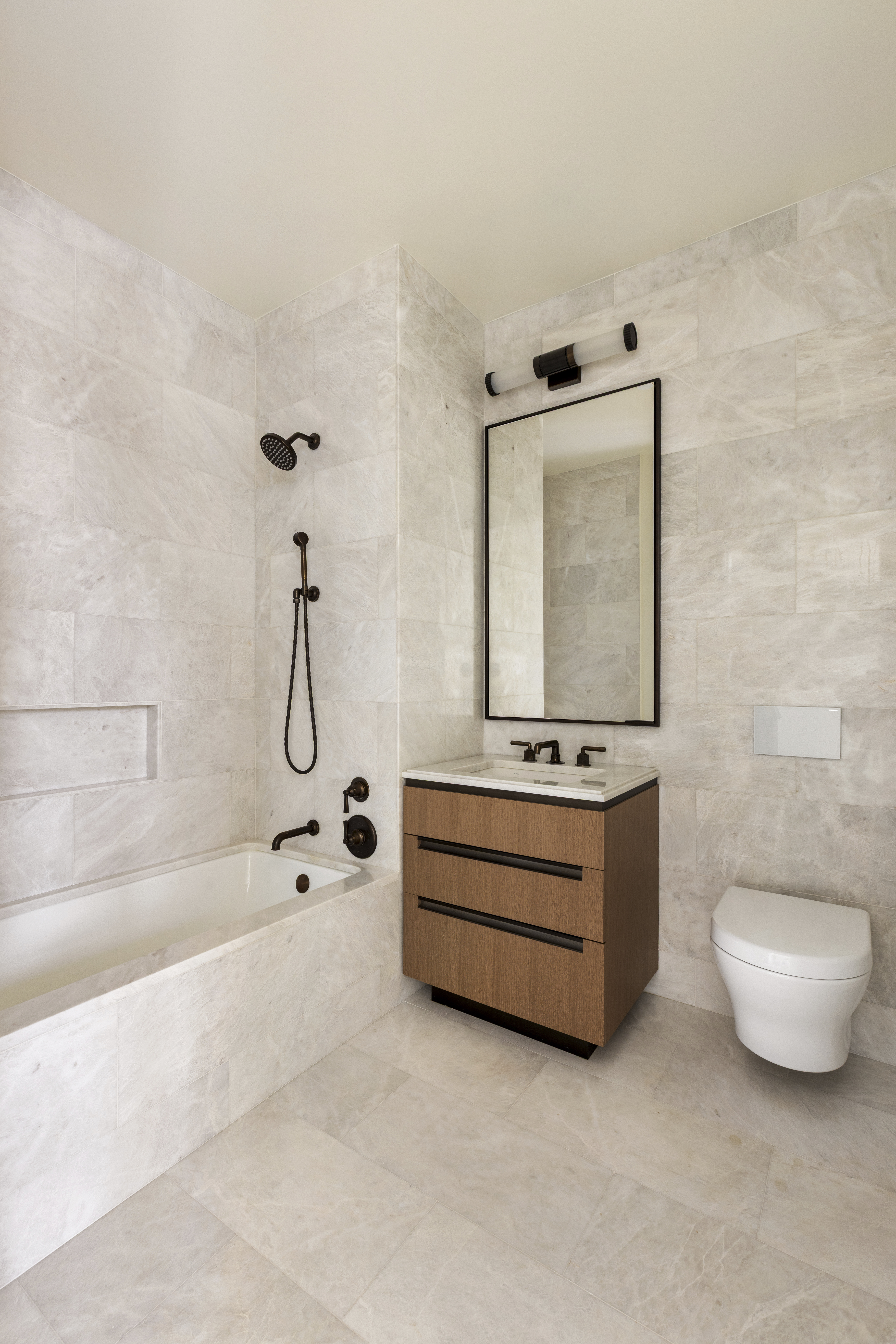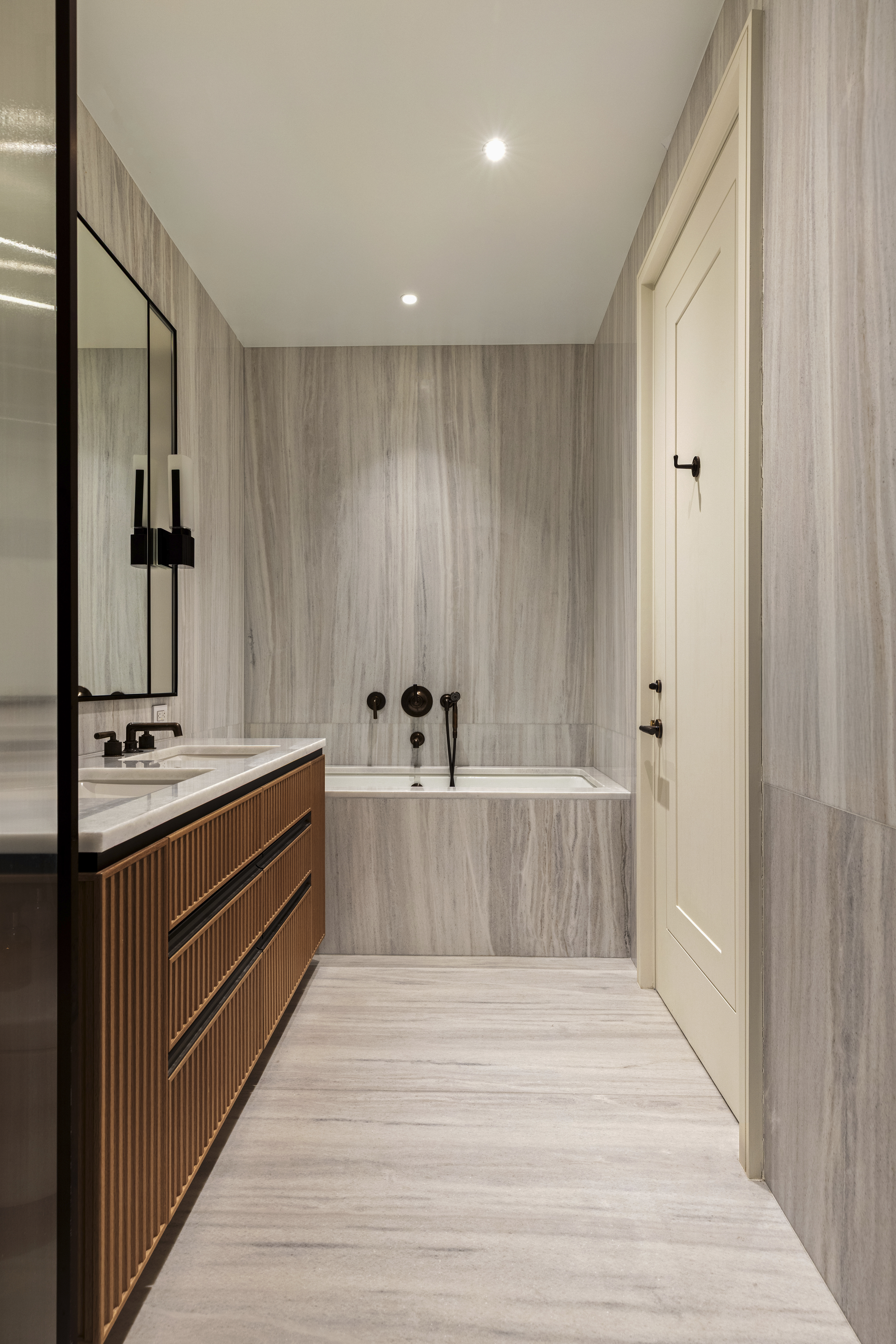 "816 号官邸是一套奢华的两卧室、两浴室加一盥洗室的住宅,拥有宽阔的朝南与朝东景观,可俯瞰高线公园沿线新植的整段街区公园。 优雅的门厅通向宽敞的大起居室,内部装潢典雅精致,并以 March & White 定制厨房为核心。厨房以精准与优雅的设计语言呈现,配备凸形波纹橡木橱柜、青铜饰边与五金件、Calacatta Venato 大理石整板台面与防溅板、定制青铜与玻璃悬挂灯具、Gaggenau 电器(含酒柜),并铺设 5 英寸宽的法国橡木地板。层高最高可达 10 英尺 9 英寸,住宅内另设洗衣机与烘干机。 主卧套房拥有宽敞的步入式衣橱与静谧的套内浴室,浴室铺设 Nestos Beige 大理石整板地面与墙面。 细节精心考量:抛光 Opal White 大理石台面、嵌入式镜面及药柜,搭配带波纹镜面面板的定制青铜与玻璃壁灯、专属梳妆台、Toto 壁挂式马桶,以及地暖系统。第二卧室同样享有其套内浴室,采用 Cristallo Pearl 磨面大理石地面、抛光大理石湿区墙面、定制梳妆台、橡木橱柜与 Cristallo Pearl 大理石台面。住宅的盥洗室亦极具视觉冲击力,以抛光 Black Onyx(黑玛瑙)整块特色墙面与磨面 Black Onyx 地面打造。 Lantern House 为住户提供无与伦比的生活方式,拥有丰富设施与 Related 团队顶级服务。 其养生与健康设施包括 75 英尺长的泳池、红外线桑拿、冷水浴、热水按摩池、按摩/理疗室、蒸汽室,以及由 Equinox 规划的最先进健身中心,并设有俯瞰高线公园的瑜伽与冥想室。其他住户专属空间包括位于高线下方的景观庭院、儿童活动室、联合办公休息室、图书室、游戏室、私人餐厅、媒体休息室,以及拥有全景视野的屋顶露台。 住户亦可通过 Related Life 享受专属活动与精心策划的体验,包括对艺术、时尚、美食、健康与文化活动的特权式参与。"
