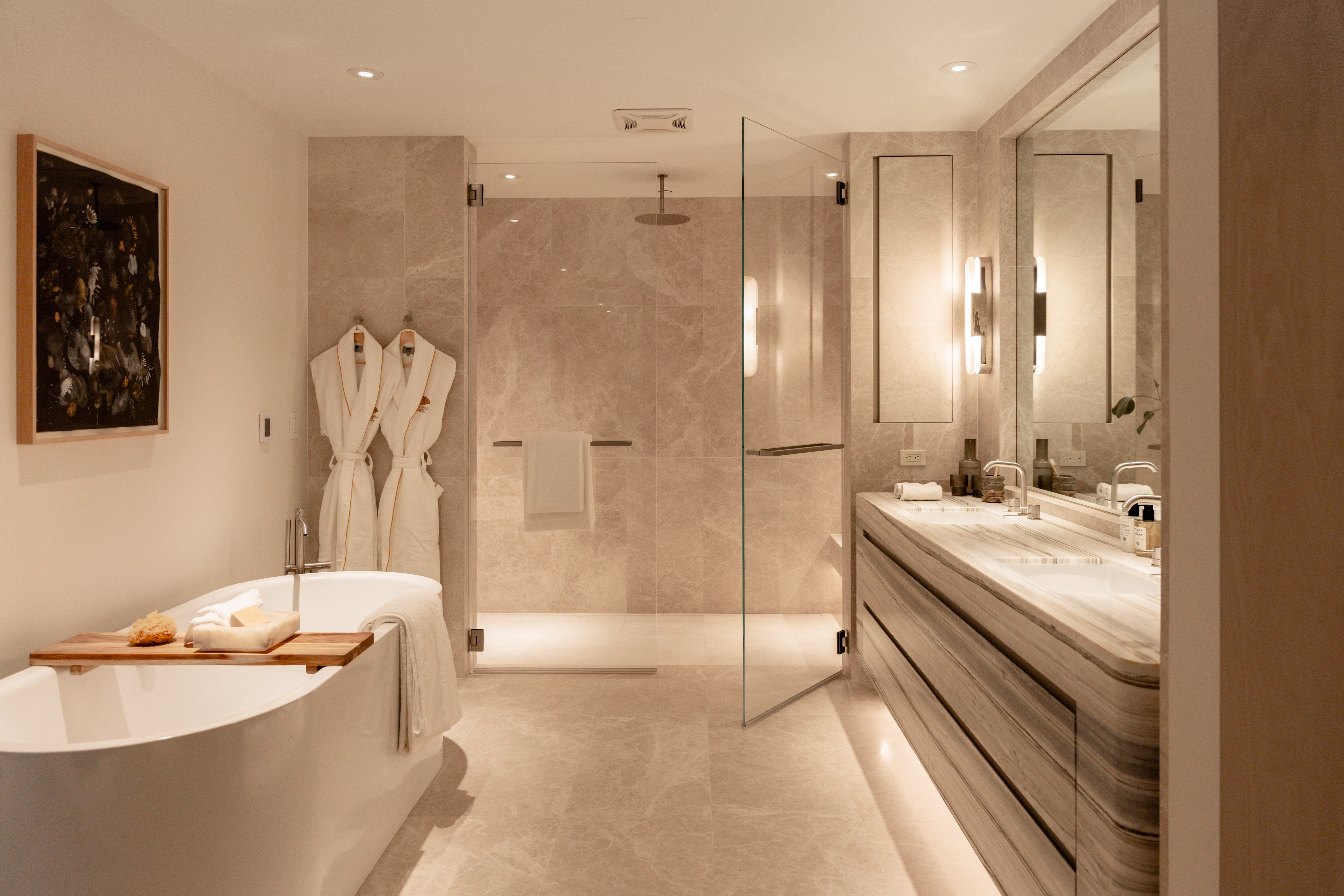 在私密与奢华之间取得优雅平衡,比佛利山文华东方公馆兼具私人宅邸的静谧氛围与五星级酒店的传奇服务。项目由知名设计公司 1508 London 联袂打造,每一处住宅皆以匠心设计与低调奢华提升日常生活品质。 屋顶空间宛如静谧绿洲,可饱览比佛利山全景景致。柑橘树与薰衣草、迷迭香、鼠尾草等芬芳植物环绕四周,中央设有恒温泳池,并提供毛巾服务与宁静雅致的休闲区。康养配套包括设有私密理疗室的水疗中心、蒸汽房与桑拿房,以及配备 Technogym 设备的健身中心、独立瑜伽/芭蕾练习室与户外露台。 住户还可尊享私人董事会议室、壁炉会客厅,以及 24 小时代客泊车、礼宾与专属管家服务。 201E 号住宅现售价 375 万美元,采用舒阔的两居室格局,西北朝向,配有私人露台、采用 Taj Mahal 石英岩打造的主厨级厨房,以及宁静雅致的主卧套房。此前挂牌价为 517.5 万美元,此次价格调整彰显卓越价值。