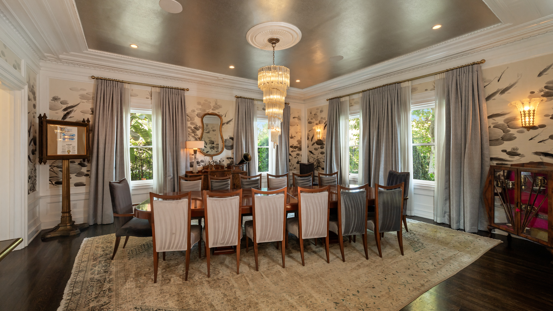 "现代奢华与永恒优雅在这座经过全面修复的汉考克公园庄园中完美融合。该庄园由标志性建筑师 Hunt & Burns 于 1914 年为 Sun Drug Company 总裁 Milton Getz 设计。由 Bowery Design Group 精美更新后,住宅重新演绎了《了不起的盖茨比》的魅力,并融入现代生活方式。 引人注目的两层楼入口展示了原始窗户、线脚装饰、护墙板以及内置家具。主层包括正式的客厅和餐厅、一间复古游戏室,以及配备 Thermador 烤炉、双冰箱和三台 Miele 洗碗机的娱乐厨房。二楼的主套房提供水疗般的浴室、定制衣柜和两个私人露台。三楼是一个宁静的休憩区,设有起居室、两间卧室和一间浴室。地下层包括私密酒吧、雪茄休息室、影院、健身房和洗衣区,专为休闲和娱乐设计。户外空间同样令人印象深刻,设有泳池、温泉、户外厨房、凉亭、火坑,以及建在三车车库上方的客房。"